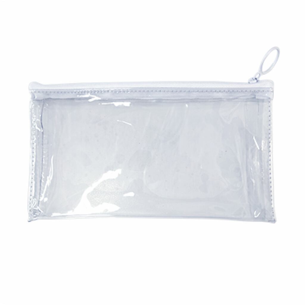 水にも強いビニール素材のファスナー付きクリアポーチです。